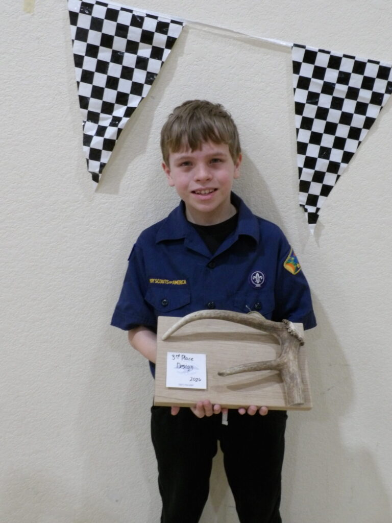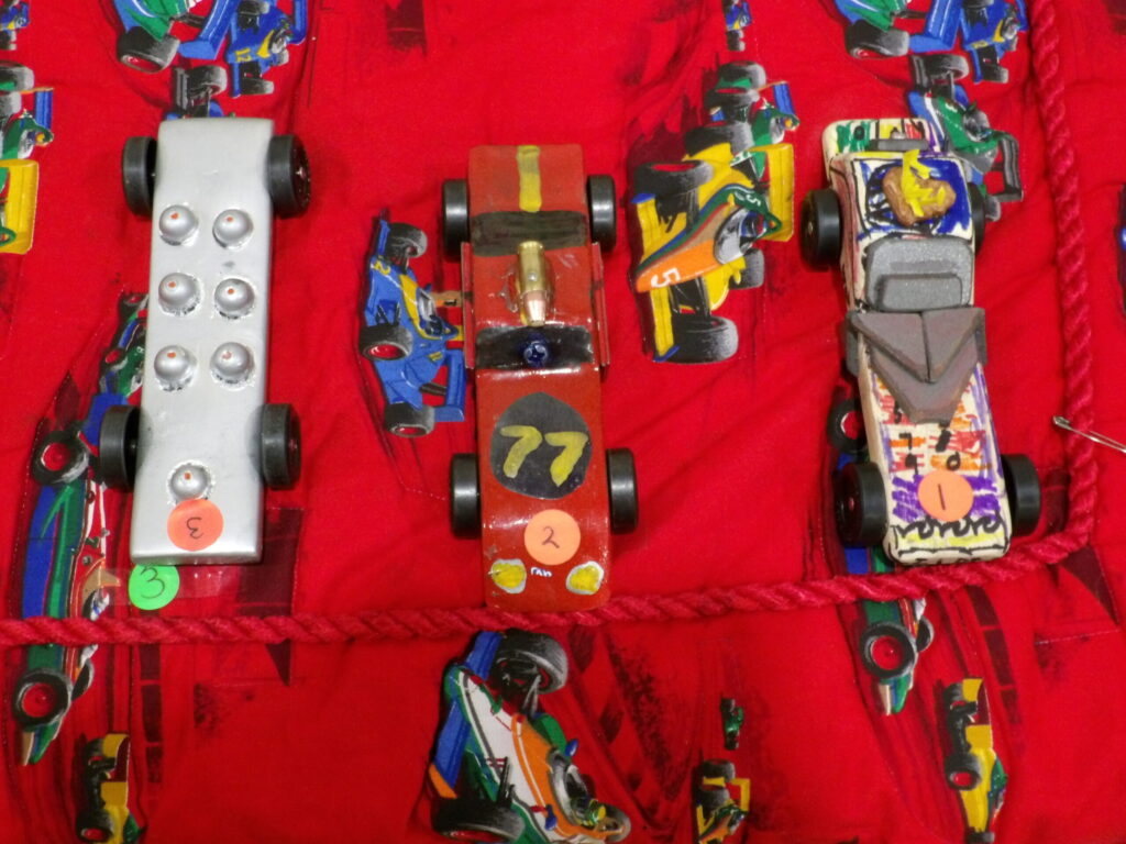 Beautiful wooden plaques were constructed and provided by Gary Edington for all district winners. All scouters cut, built and designed their own cars with parental help and advice. Cars were constructed from the official Pinewood Derby car kits available for purchase at any local scout shop. The event included a pizza party that was enjoyed by all contestants and parents.