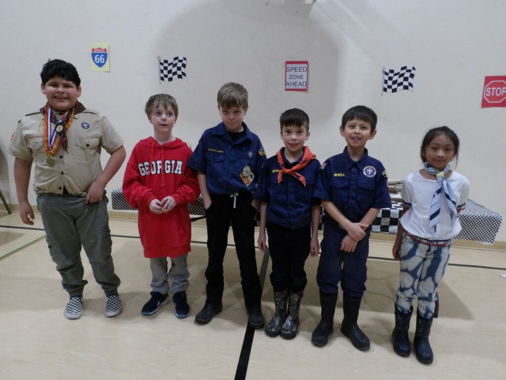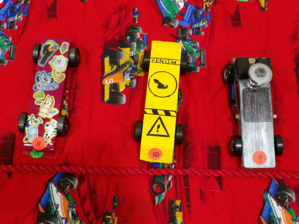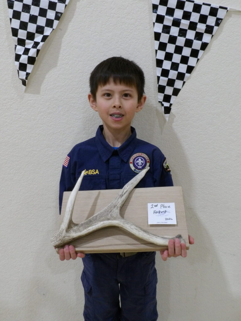 After four exciting heats, the race times were finalized with three championship winners. In first place was River Higley, a tiger scout from pack #67, with an average scale speed of 187.6 mph. In second place was Rowan Kim-Pigusch, a wolf scout from pack #67, with an average scale speed of 187.2 mph. In third place was Brianne Jumuad, a bear scout from pack #81, with an average scale speed of 185.9 mph.