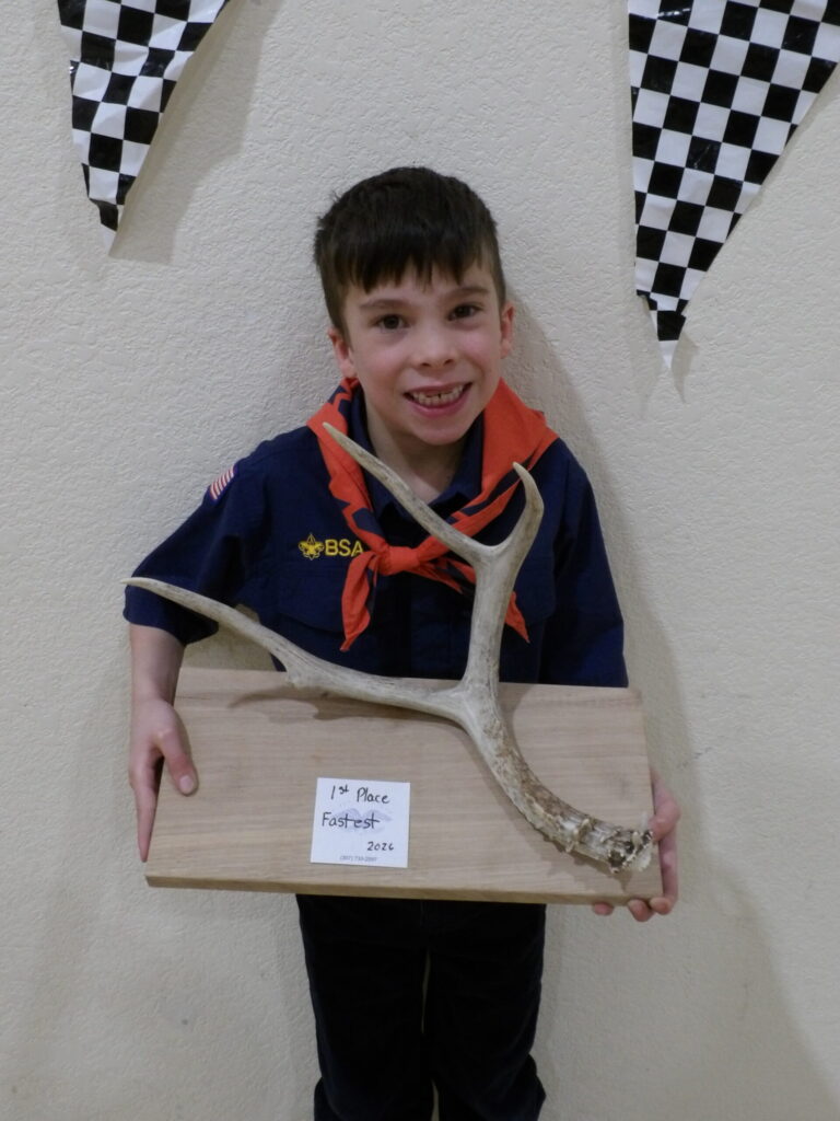 The annual Scouting America Headwaters District Pinewood Derby was held at the Alpine Civic Center on February 7, 2026. Fourteen racers, ages 5-11, hailing from Jackson Hole to Star Valley to Driggs, went head to head in a speed test down a four lane wooden track.
