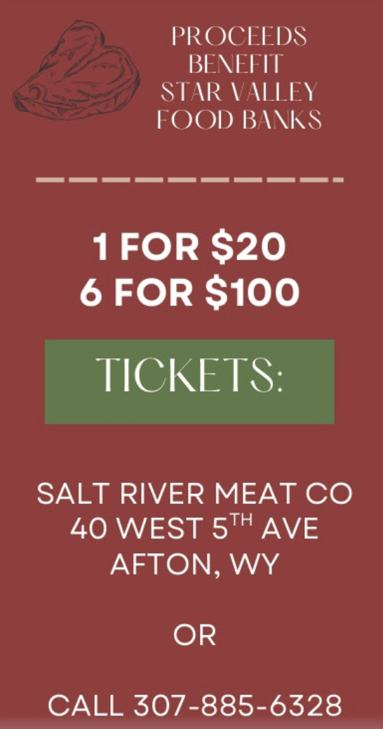 Tickets may be purchased until drawing time on January 2. Folks can purchase tickets by calling 307-885-6328 and paying through Venmo, or they can stop by Salt River Meat Company at 40 West 5th Avenue in Afton.