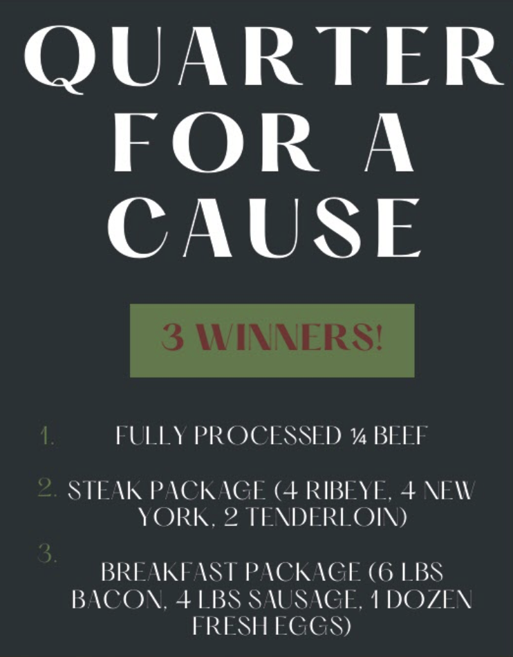 Salt River Meat Company is sponsoring a raffle fundraiser to benefit the three food banks in Star Valley. The Quarter for a Cause event is offering three different packages to raffle winners, with a fully processed quarter beef as the grand prize. Drawing is scheduled for 5 p.m. on Friday, January 2, 2026.