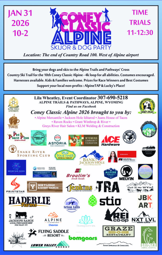 Lila Wheatley, Event Coordinator for the 10th Coney Classic Alpine Skijor and Dog Party, called into the Weekday Wake-Up on Monday, January 19 to discuss the details on this year’s event. Proceeds benefit Alpine Trail and Pathways and Lucky’s Place.
