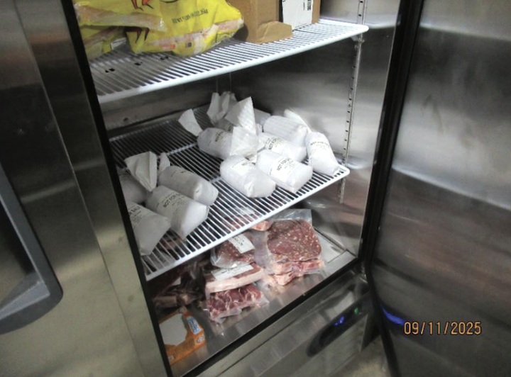 This photo depicts custom exempt packages embargoed inside a freezer at the Afton Food Pantry.